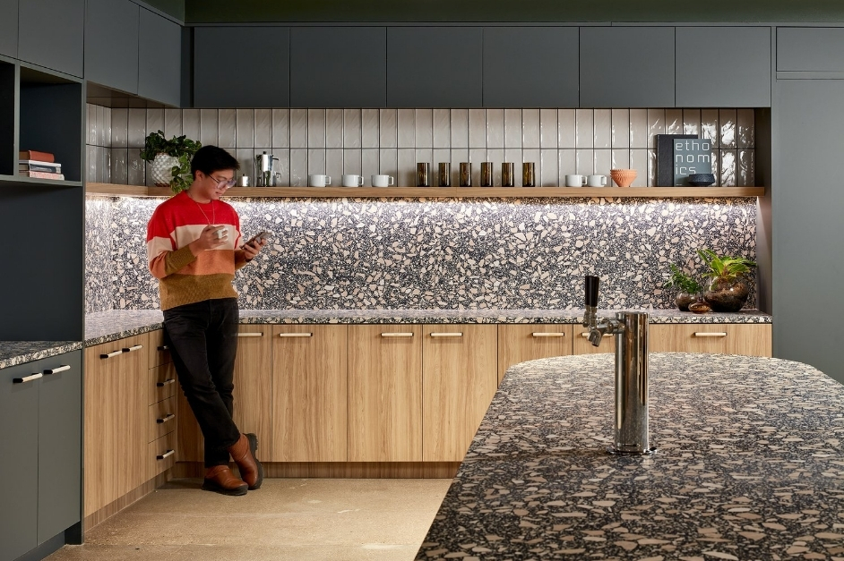 Engineered from recycled portland cement, fly ash that has been saved from contaminating waterways, and rare, recycled marble and granite chips from quarries long since closed.